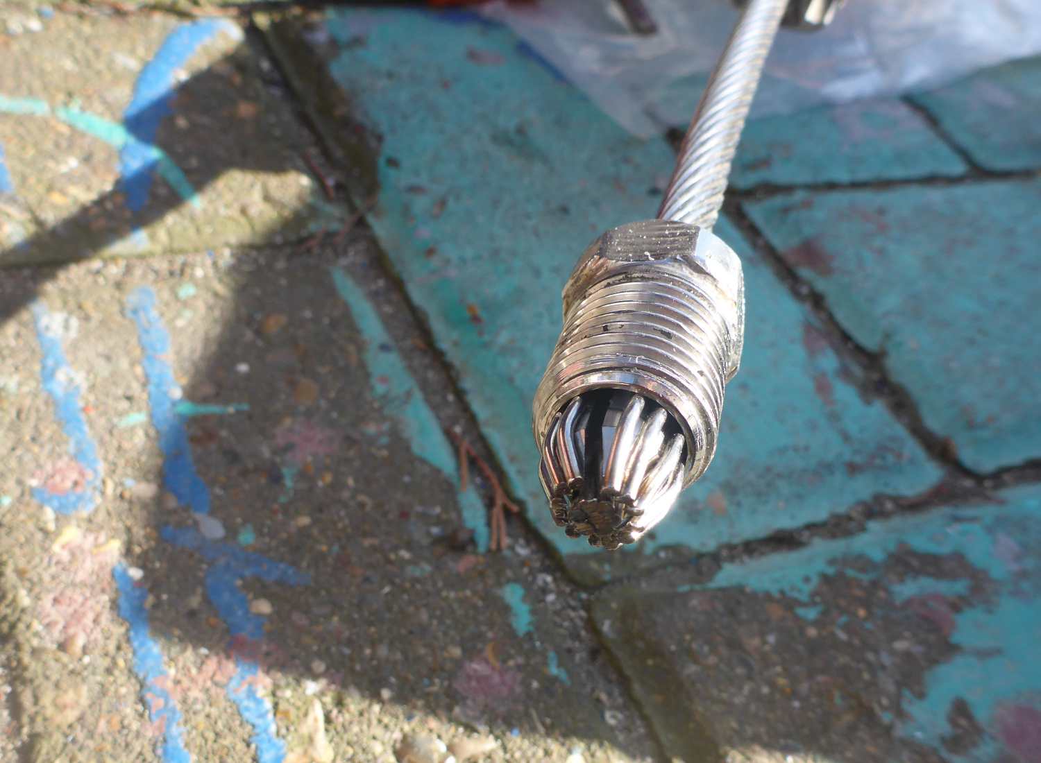 The new standing rigging has arrived! It is sitting, coiled and shiny, in the back of the car and tomorrow we will fit it to the mast. As ever, it has been weeks since we took it all apart so the hope is that you can find all the right bits and put them together in the right order. “Interesting” that we have to fit the fitting that secures the base of the forestay ourselves. The forestay is supplied as wire cut slightly over length so it can be fed back down the tube that the genoa is furled around.  We have to cut it to length and make up the fitting that will hold the whole mast up.  Unlike all the other wires, there is no redundancy for this one – if it fails under load, we loose the mast. No pressure then. Still debating whether to shorten it a little. The rig has a lot of rake and bend – much more than recommended as an upper limit by my rigging handbook. Taking 50mm off the length moves the top of the mast forward by around 160mm. But she sails well so presumably it is supposed to look like that?